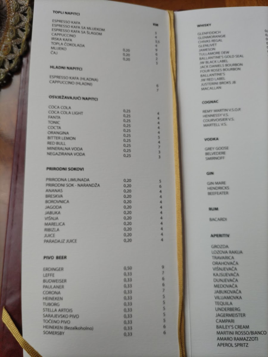The menu at Bugatti café bar features a selection primarily centered around coffee and alcoholic beverages. Visitors can expect a variety of coffee options including classic choices such as cappuccino and kafa, suitable for breakfast or casual coffee breaks. The café also offers an assortment of alcoholic drinks, making it suitable for light meals or relaxed evening visits.